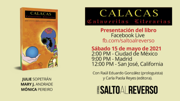🧡 Los invito a la presentación del libro «CALACAS: Calaveritas Literarias» de Julie Sopetrán, Mary Andrade y Mónica Pereiro, vía Facebook Live, este sábado 15 de mayo de 2021 (2:00 pm CDMX).