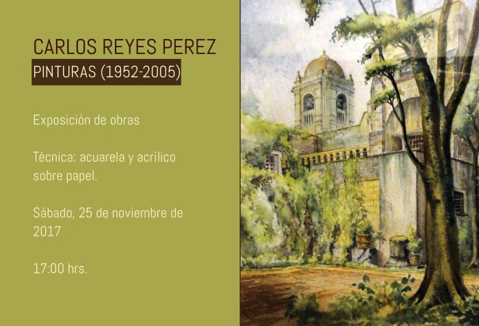 El sábado 25 de noviembre de 2017, mi familia y yo organizamos la exposición Pinturas (1952-2005), en la Ciudad de México, para honrar a mi abuelo, el pintor Carlos Reyes Perez. En este pequeño evento a manera de homenaje sorpresa, celebramos su trayectoria como dibujante y pintor autodidacta.